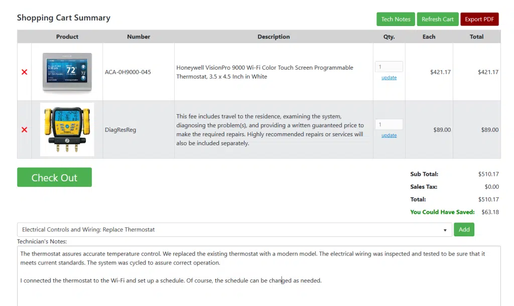 Time is of the essence in the HVAC industry. With Flat Rate Plus Online, the process of generating invoices is swift and efficient. Technicians can quickly locate the required flat rate task or item through easy-to-navigate images and categories. A simple tap on the “Add to Shopping Cart” button, and they’re ready to proceed. Accepting payments and emailing invoices is a snap. This speed translates to more jobs completed, happier customers, and a healthier bottom line.